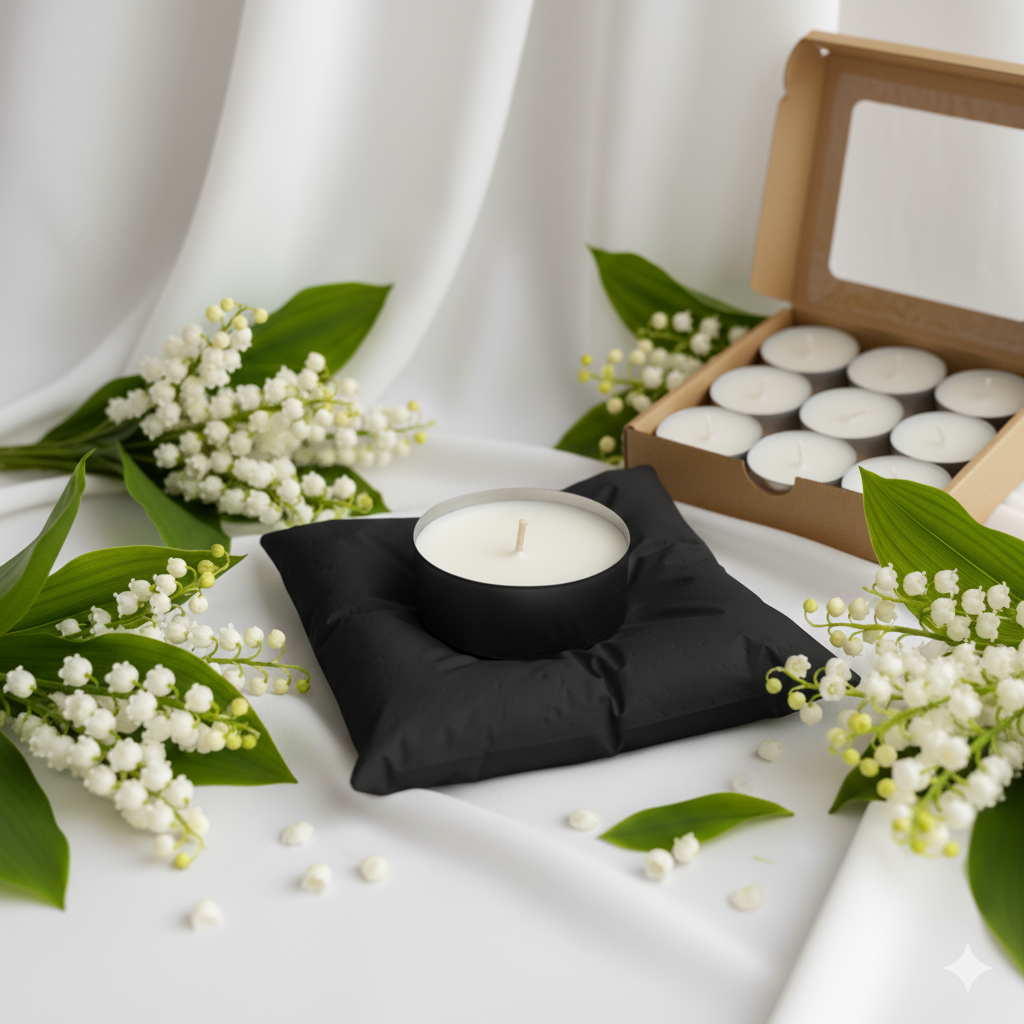 Komplektā iekļautas 9 aromatizētas sojas vaska tējas sveces, katra ar aptuveni 2–3 stundu degšanas laiku. Sojas vasks (90%) nodrošina lēnu, tīru un vienmērīgu liesmu, savukārt kokvilnas dakts deg mierīgi, nepievienojot gaisu smagumam vai dūmiem. Aromāts izkliedējas maigi, nemanāmi, kā fonā esošs siltums, kas piešķir vakaram maigumu un telpai klātbūtni. Tas nav uzbāzīgs aromāts — tas ir vienkārši telpas elpa, kas palīdz atslābt, sakārtot domas un noskaņoties mierīgākam ritmam.