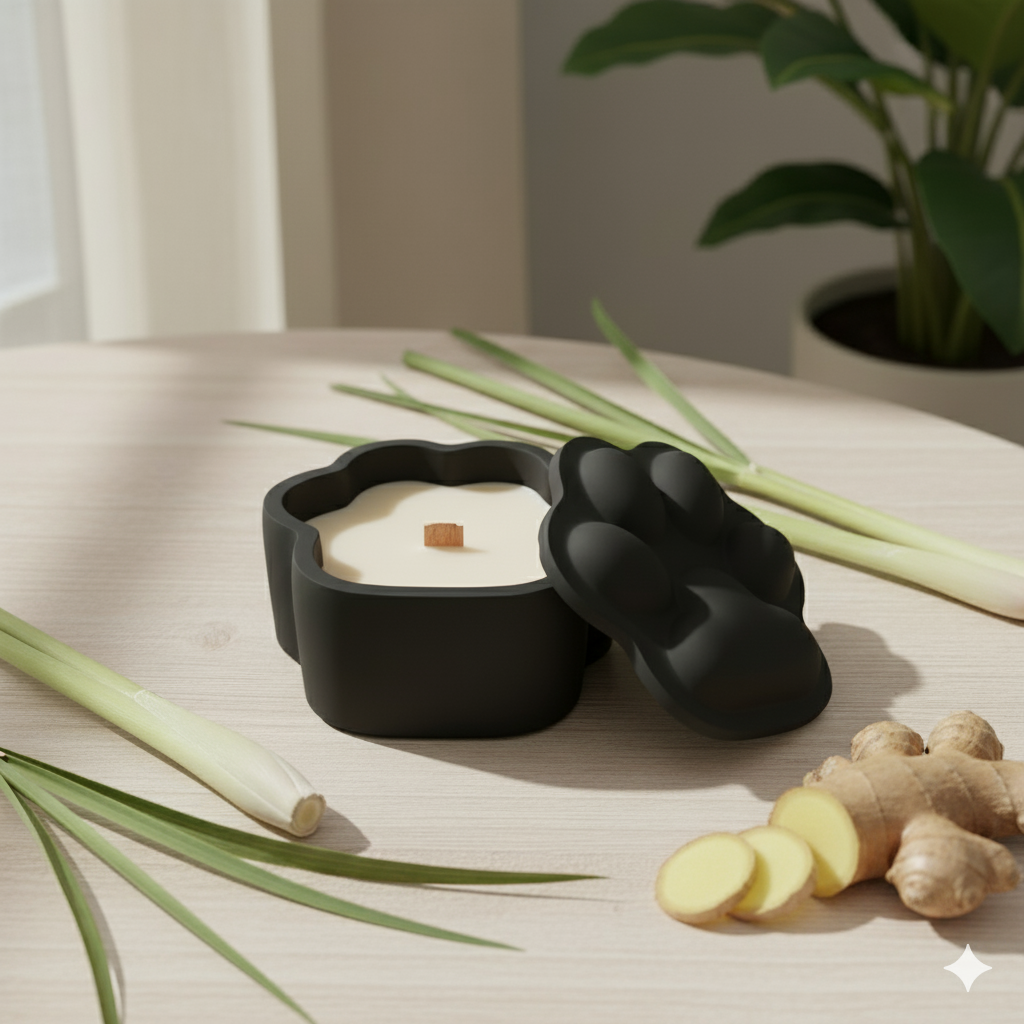 Novanilla K31B ir svece, kas piešķir telpai siltu, mierīgu un klātesošu mājīgumu. Tā ir ievietota melnā ģipša konteinerā, kas veidots kaķa pēdiņas formā ar maigu un noapaļotu siluetu. Forma nav uzkrītoša vai bērnišķīga – tā rada sajūtu par mājām, drošību un vieglu, klusu tuvību. Tā ir neliela detaļa, kas piešķir telpai personību un mīļu akcentu, nepārspīlējot.