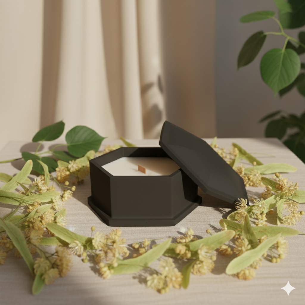 Novanilla K32B ir svece, kas ienes telpā klusinātu mieru un vizuālu harmoniju. Tā ievietota melnā ģipša konteinerā ar noņemamu vāciņu. Forma ir zema, noapaļota un neuzkrītoša, tādēļ svece kļūst par akcentu nevis ar formu, bet ar sajūtu, ko tā rada. Melnā krāsa piešķir traukam dziļumu un nelielu noslēpumainību, savukārt liesma uz šī fona kļūst īpaši silta un pamanāma. Šī ir neliela detaļa, kas interjerā netiecas izcelties, bet tomēr rada mājīgu un noslīpētu kopainu.