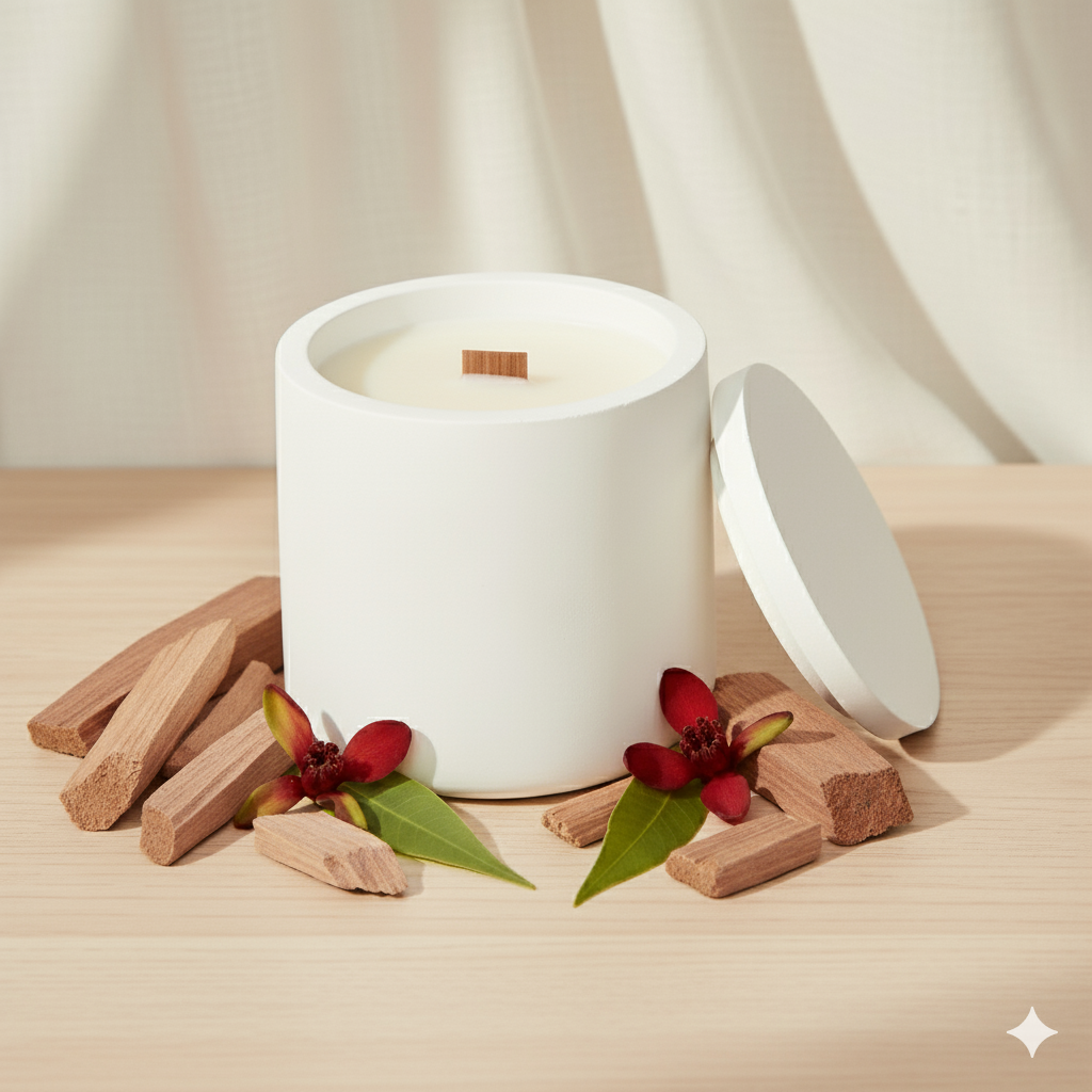 170 г соевого воска, содержащиеся в контейнере, обеспечивают примерно 35–40 часов равномерного и медленного горения. Соевый воск горит чисто, без тяжелого дыма или примесей, а деревянный фитиль придает пламени мягкий, тихий треск, который делает момент интимным и присутствующим. Этот звук и свет вместе создают ощущение, напоминающее уют, — тот, который не слышен громко, но ощущается глубоко.